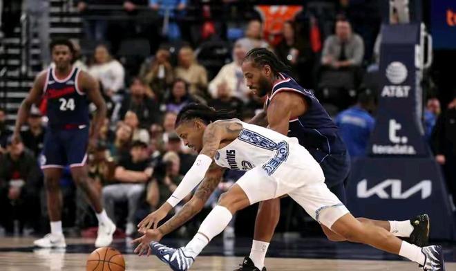 反观洛杉矶快船队,近期的连败似乎已经影响了球队的士气和化学反应。尽管科怀·伦纳德尽力找回状态,全场13投8中,拿下21分,但在灰熊队严密的整体防守下,他的个人努力显得独木难支。詹姆斯·哈登同样未能盘活全队,他全场仅得到13分,送出6次助攻,外线手感冰凉,无法为球队提供持续的火力支援。替补出场的克里斯·邓恩表现积极,贡献了17分和5次助攻,是快船队为数不多的亮点。然而,除了这三位球员,快船队再无人得分上双,进攻端的停滞和防守端的漏洞,让他们在主场球迷面前只能无奈接受败局。