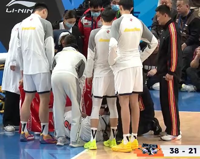 突发!广东队后场悍将徐杰,在比赛中,被北京队球员周琦撞到重伤,随后,徐杰被队友直接背出场……