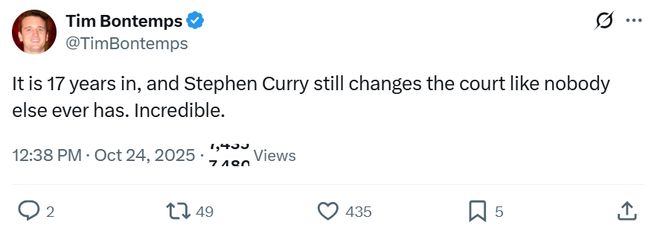 正如名记Tim Bontemps赛后所说,库里的球场影响力依旧无人能及,17年如一日,他真的太不可思议了。